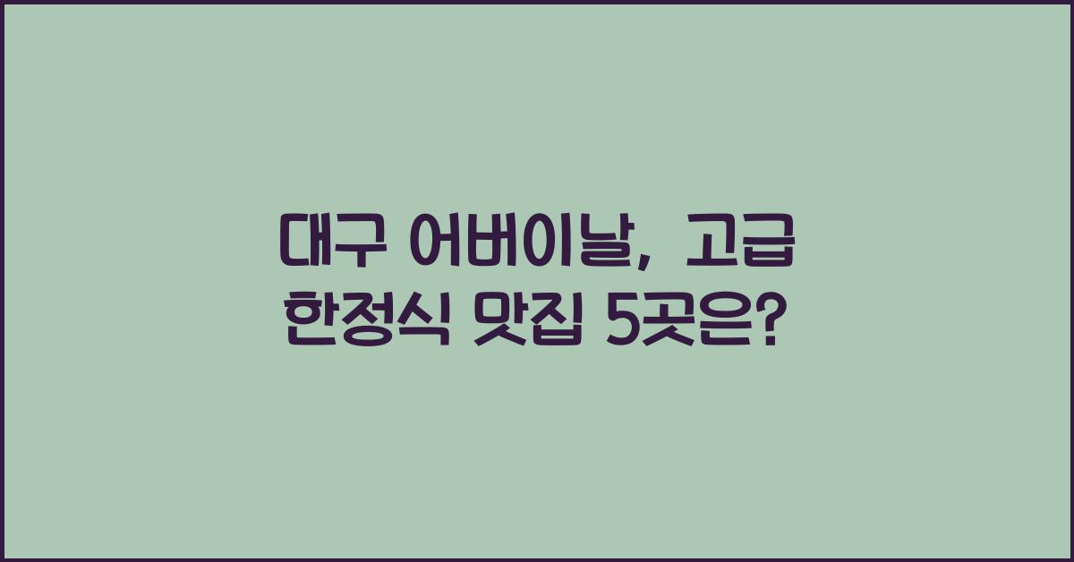 한정식은 여러 가지 반찬과 함께 다양한 요리가 제공되는 한국의 전통적인 식사 형식입니다. 여러 가지 맛을 한 번에 경험할 수 있는 장점이 있어, 특히 어버이날 같은 특별한 날에 알맞습니다. 대구의 한정식 맛집들은 그 지역 특유의 신선한 재료와 정성이 가득 담긴 요리로 손님을 맞이합니다. 이제 각각의 맛집을 자세히 살펴보겠습니다.