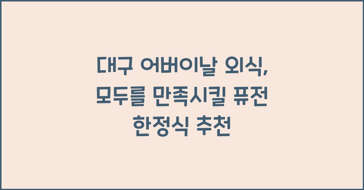 이 날을 맞아 특별한 메뉴를 구성하는 한정식 집이 많습니다. 전통적인 한정식과 함께, 그동안 맛보지 못한 퓨전 메뉴가 함께 제공되므로 색다른 경험을 할 수 있습니다. 여러분의 부모님께서 좋아하실 만한 트렌디한 요리들이 포함되어 있어, 꼭 가보고 싶어지는 곳입니다. 대구에서 어버이날 외식 장소를 찾는다면 절대 놓쳐서는 안 될 기회입니다.