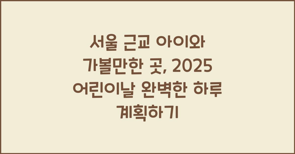 결국, 서울 근교 아이와 가볼만한 곳: 2025 어린이날 완벽 정리에서는 다양한 장소마다 특별한 매력을 지니고 있어서, 여기에 맞춤형으로 하루 계획을 세우면 정말 행복한 시간이 될 것입니다.