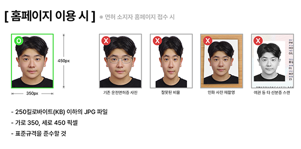 - 얼굴이 잘 보이는 3.5 x 4.5cm 크기의 사진이 필요합니다.